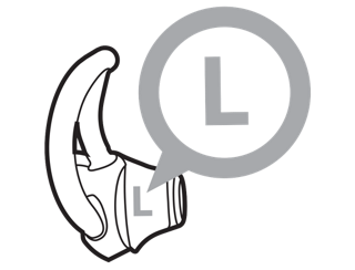 Remarque : chaque embout est marqué d’une lettre, L pour l’oreille gauche et R pour l’oreille droite. Veillez à bien fixer l’embout StayHear® L sur l’écouteur de gauche et l’embout StayHear R sur l’écouteur de droite.