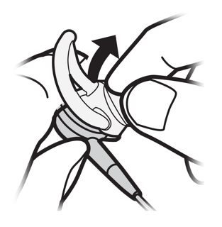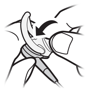 Positionnez l’ouverture du nouvel embout sur la canule et la petite fente au-dessus de la crosse de celle-ci.