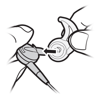 Insérez la base de l’embout autour de celle de l’écouteur jusqu’à ce qu’il soit bien fixé.