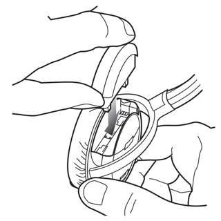 - Maintenez l’écouteur droit, comme indiqué par l’illustration dans la section « Installation de la batterie ».